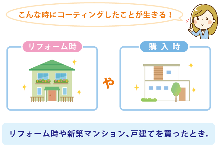 フロアコーティングを施工するタイミングは、リフォームや新築の時がベストで築10年以上経過した家に施工することで劇的な蘇りも期待できます。
