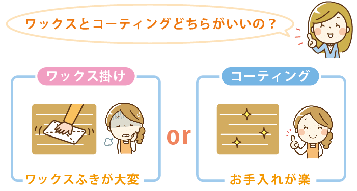 フロアコーティングをするとワックス掛けが必要なくなるのよね!