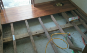 張り替え施工前に床を歩いているときにキシキシと床鳴りがするようなら、床の下地が傷んでいる可能性がありますので床の張り替えをおすすめします。
