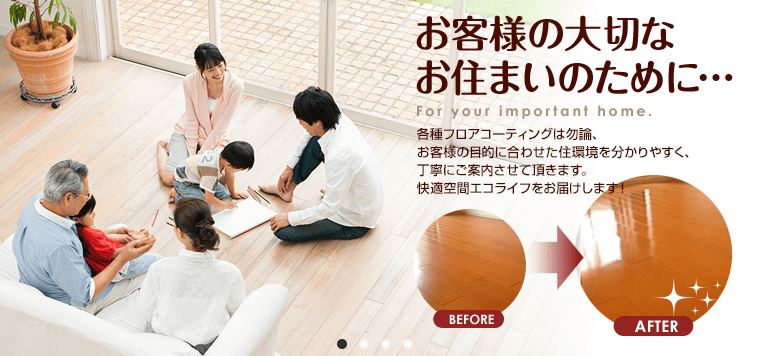 5種類のコーティングをもち、新築から中古物件まで施工を手掛ける会社だよ。