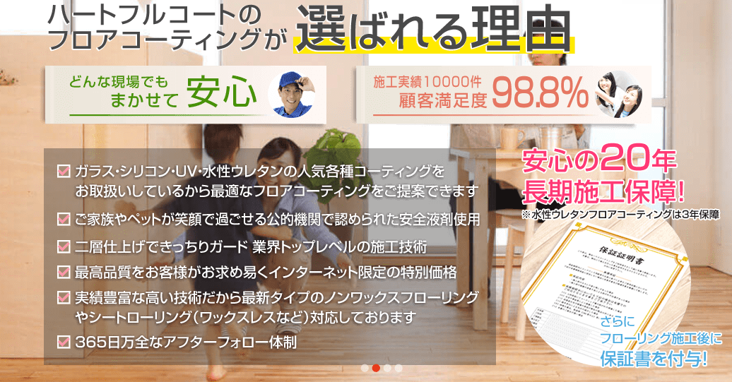 ペットが歳老いてきて、フローリングでけがをしそうになり、グリップ性が高いフロアコーティングを選びました。