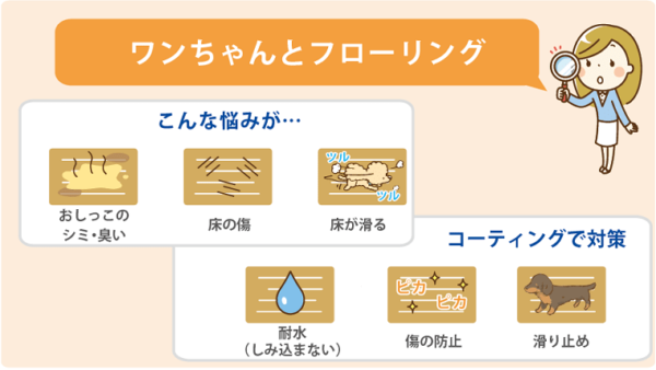 このようにフロアコーティングをすることでペットの悩みはほとんど解決してしまうのです。