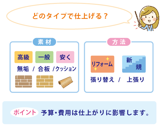 フローリングの張り替え工法を選ぶ際のポイントとしては、床の現状や予算、リフォームの目的などをしっかりと考慮することが大切です。