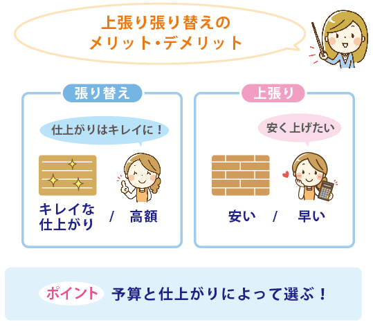 下記で、重ね張りのメリットとデメリットを詳しく解説します。