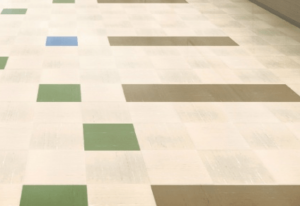 先ほどのオフィスと同様の「Pタイル」や家に使われるような「フローリング」であったり「クッションフロア」などもよく見かけますね。