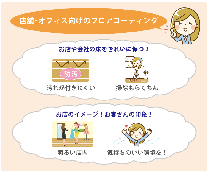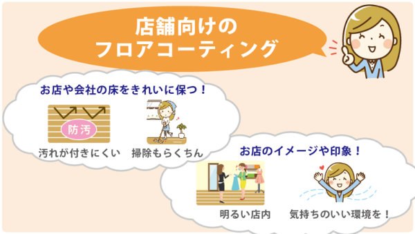 店舗向けのフロアコーティングについて詳しく紹介しています。