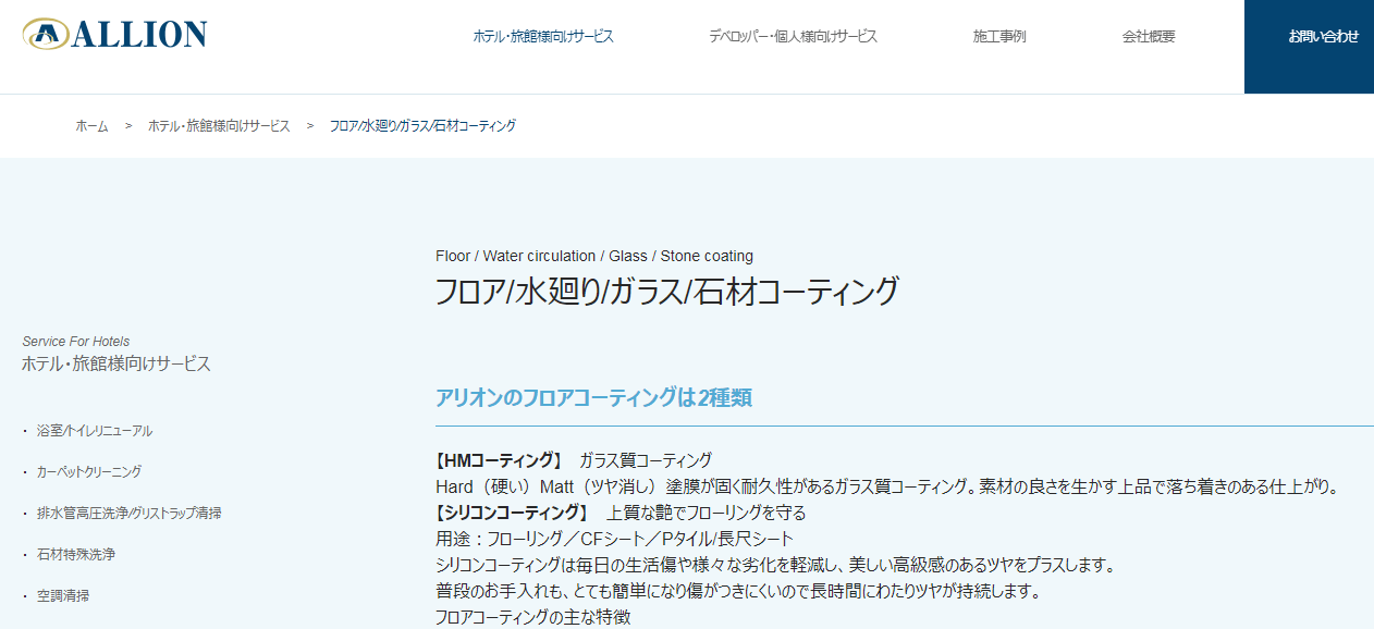 株式会社アリオンは大手ホテルや店舗・施設などのメンテナンス、コーティング施工から住宅の部分的コーティングまで手掛ける会社です。