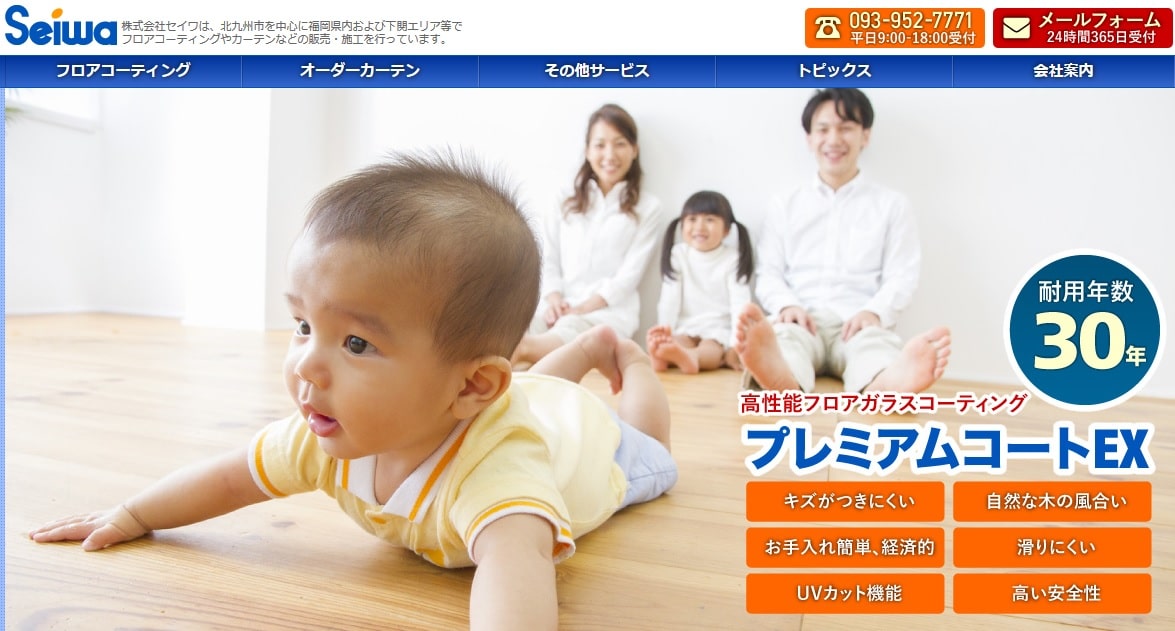 株式会社セイワはフロアコーティングを中心に水廻りのコーティング、キッチンのクリーニング、オーダーカーテンの販売なども行う会社です。