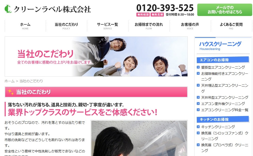クリーンラベル株式会社はハウスクリーニング業者で、エアコン・キッチン水廻り・床のクリーニングまで行っています。