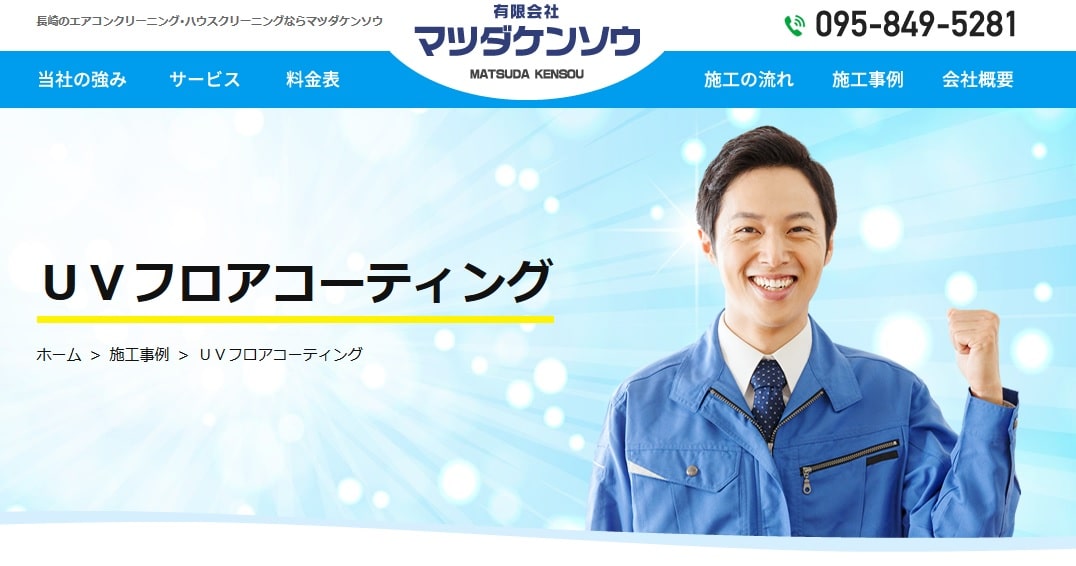 有限会社マツダケンソウは長崎にある創業40年の清掃専門業者で、フロアコーティングの施工エリアは長崎市・諫早市・大村市・西彼杵郡時津・長与などになります。